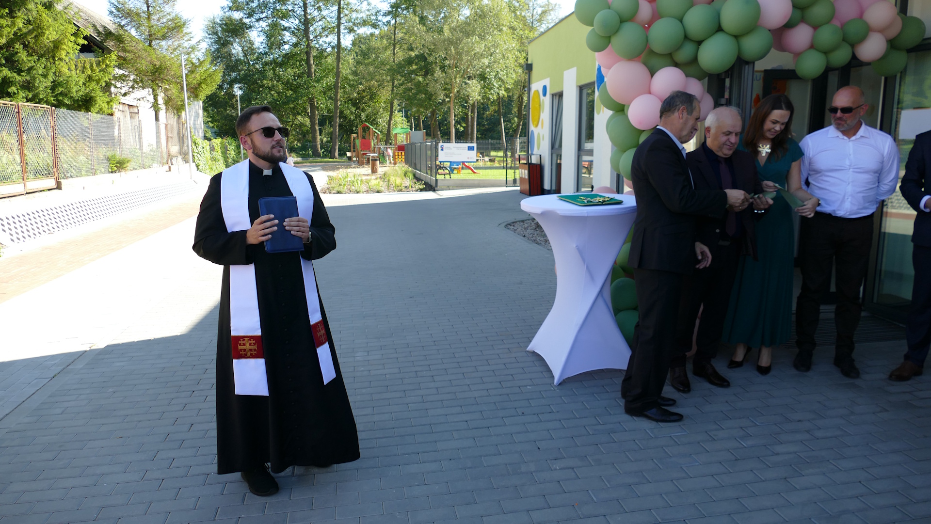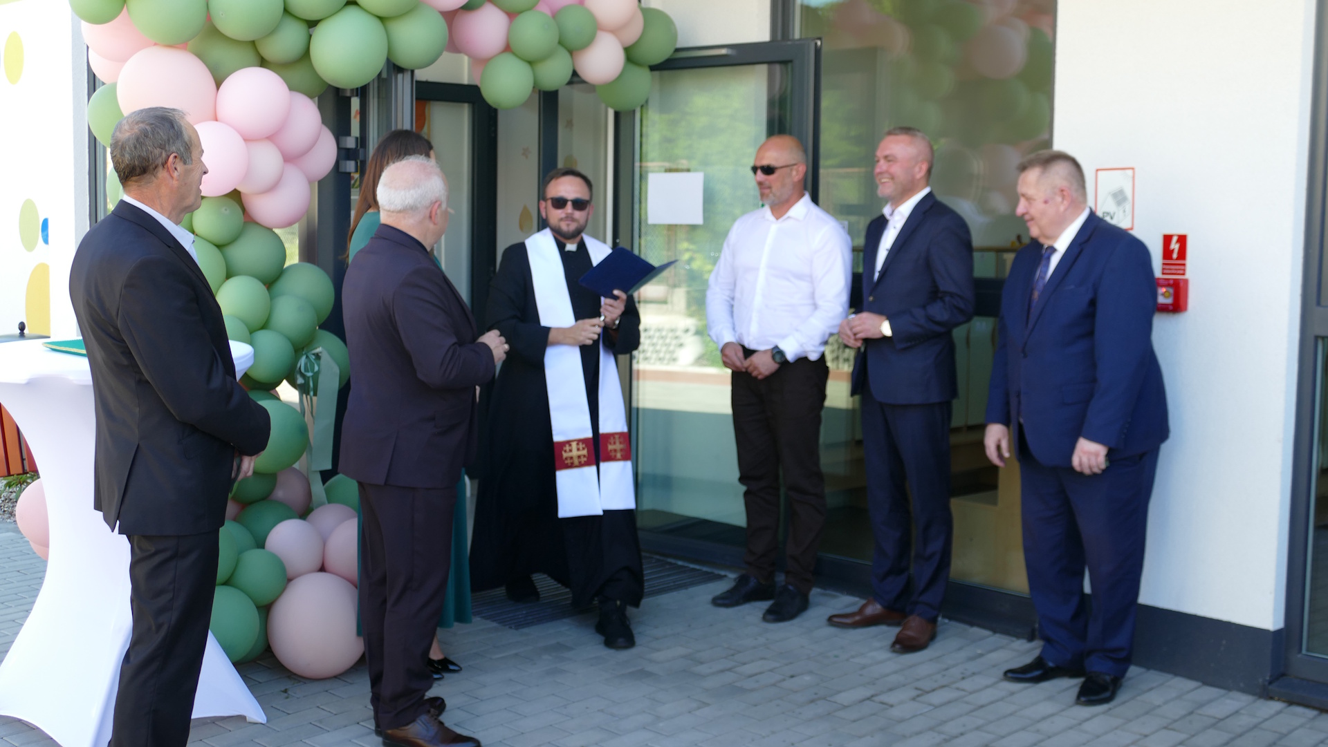 Uroczystość zakończyło poświęcenie obiektu przez ks. Krzysztofa Oporka, wikarego parafii pw. Przemienienia Pańskiego w Piątnicy, oraz tradycyjne przecięcie wstęgi, symbolizujące oficjalne rozpoczęcie działalności żłobka Piątuś.