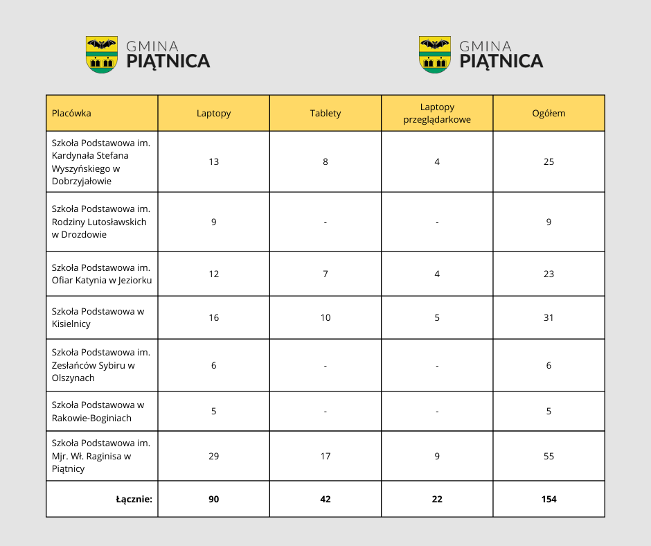 Nowoczesny sprzęt komputerowy dla szkół z terenu Gminy Piątnica w ramach KPO